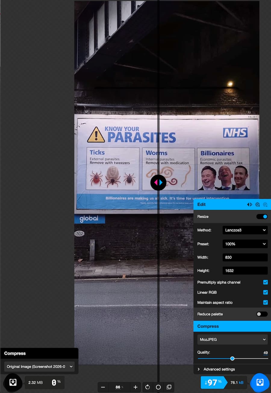You don’t need to have Photoshop, you can use free online tools. My favourite at the moment is squoosh.